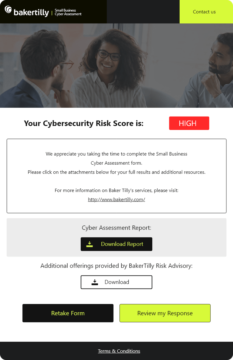 The Baker Tilly Small Business Cyber Assessment is a service designed to help small businesses identify and address cybersecurity risks. It evaluates vulnerabilities in areas such as data storage, system access, and backup processes, providing actionable recommendations to strengthen security.